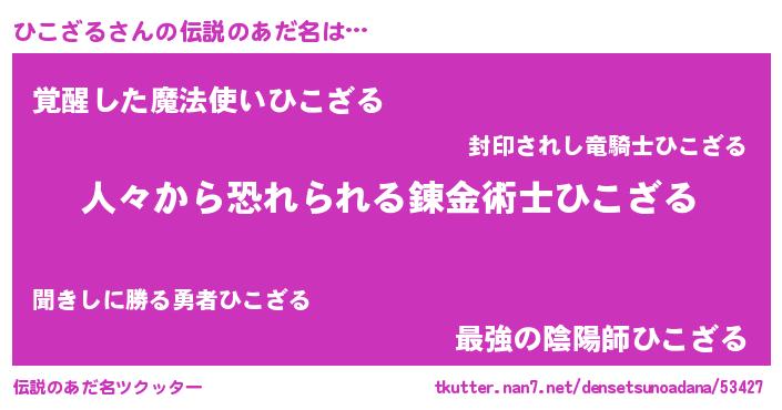 | 男性向けラノベタイトル風あだ名 | 『ヒコザルスレイヤー』 |