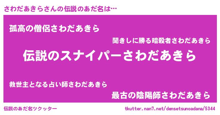 | 胡散臭い通販商品みたいなあだ名 | 『必ず成功する霊験あらたかなお札…その名も「さわだあきら」』 |