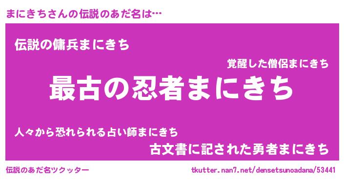 | 男性向けラノベタイトル風あだ名 | 『まにきちに滅ぼされるだけの簡単なお仕事です』 |