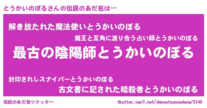 | 男性向けラノベタイトル風あだ名 | 『はたらくとうかいのぼるさま!』 |