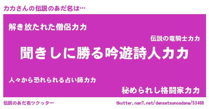 | ヒーロー風カッコイイあだ名 | 『ネオカカ』『幻影騎士カカ』 |