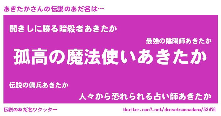 | 女子向けラノベタイトル風あだ名 | 『あきたかは平凡を望む』『闇のあきたか』 |