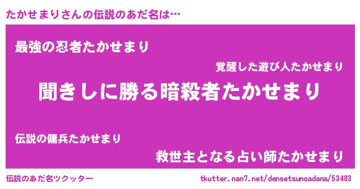 | 意味不明あだ名 | 『住所不定無職たかせまり(50歳)』 |