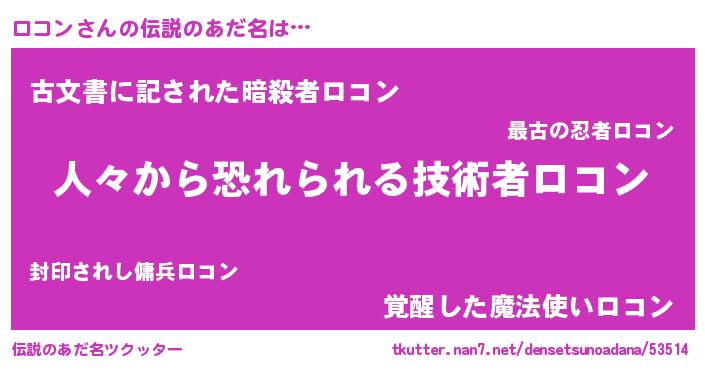| ヒーロー風カッコイイあだ名 | 『ウルトラ戦士ロコン』『ネオロコン』 |