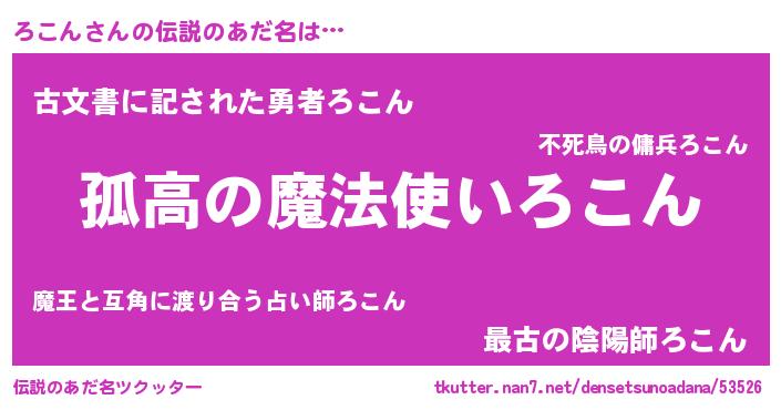 | 意味不明あだ名 | 『自称ろこん』『とにかく怪しいろこん』 |