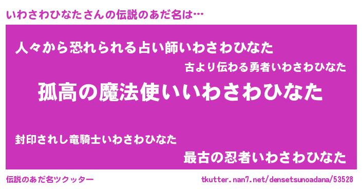 | 男性向けラノベタイトル風あだ名 | 『イワサワヒナタスレイヤー』 |