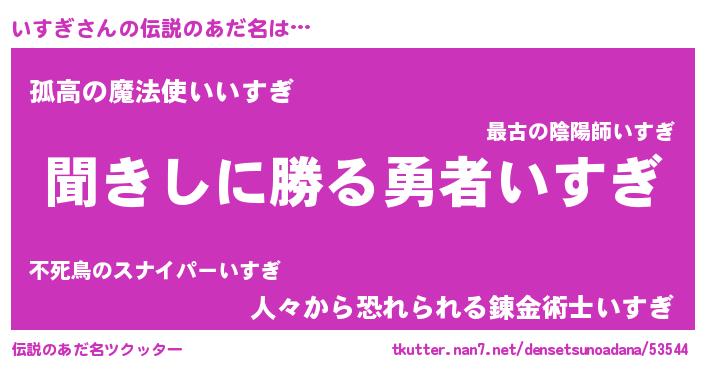 | 男性向けラノベタイトル風あだ名 | 『いすぎという概念が存在しない退屈な世界 』 |