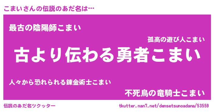 | 意味不明あだ名 | 『住所不定無職こまい(91歳)』『自称こまい』 |