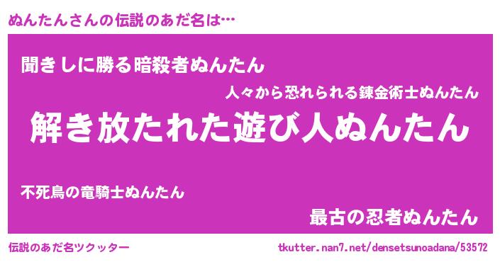 | 男性向けラノベタイトル風あだ名 | 『ぬんたんに滅ぼされるだけの簡単なお仕事です』 |