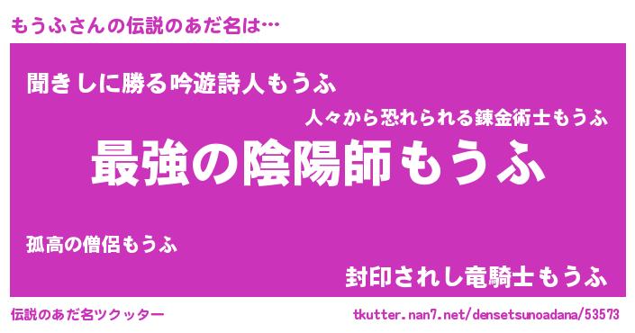 | 女子向けラノベタイトル風あだ名 | 『もうふの婚約者』『死神もうふの再婚』 |