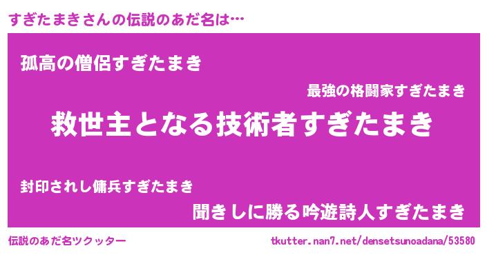 | ヒーロー風カッコイイあだ名 | 『究極戦士スギタマキ』『黄金騎士スギ』 |