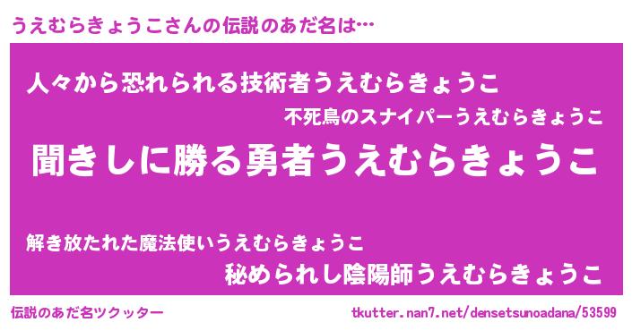| 肩書あだ名 | 『うえむらきょうこ上級大将』 |