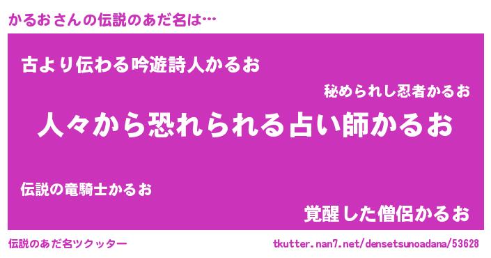 | ヒーロー風カッコイイあだ名 | 『正義の使者かるお』『ネオカルオ』 |