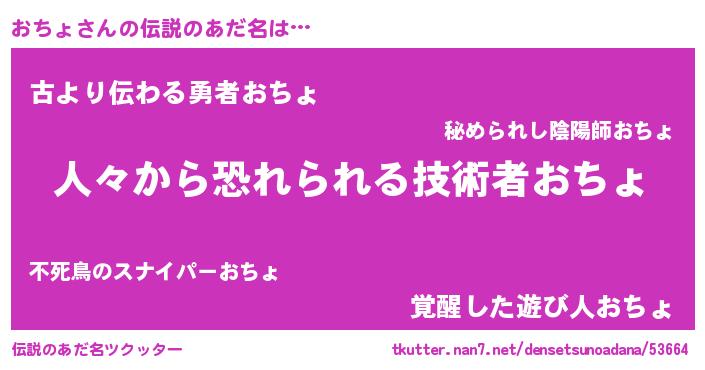 | ヒーロー風カッコイイあだ名 | 『仮面オチダー』『究極戦士オチョ』 |