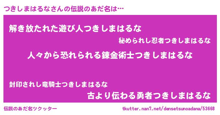 | ヒーロー風カッコイイあだ名 | 『超時空戦士ツキシマハルナ』 |