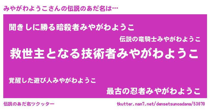 | ヒーロー風カッコイイあだ名 | 『慈愛の使者みやがわようこ』 |