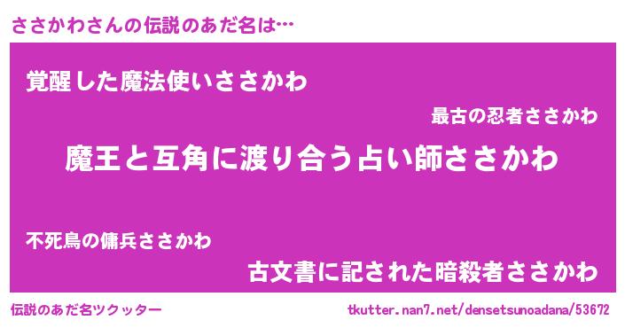 | 意味不明あだ名 | 『自称ささかわ』『つくし科ささかわ属』 |