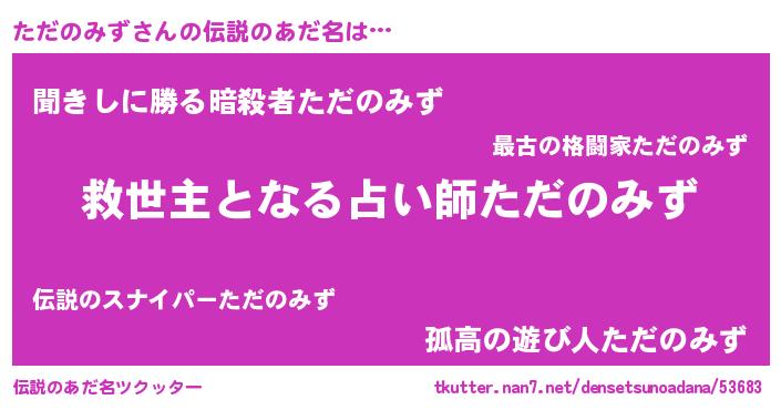 | 意味不明あだ名 | 『住所不定無職ただのみず(65歳)』 |