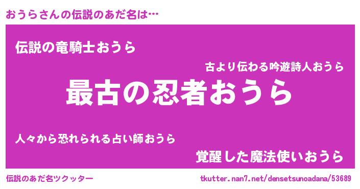 | 意味不明あだ名 | 『おうらフォーエバー』『ペロリンおうら』 |