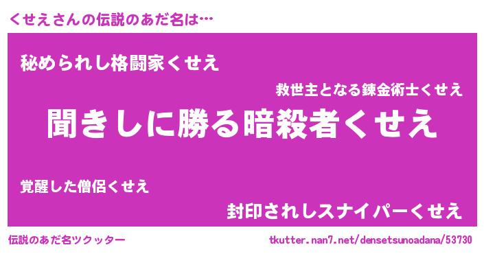 | 女子向けラノベタイトル風あだ名 | 『異世界で失敗しない100のくせえ』 |
