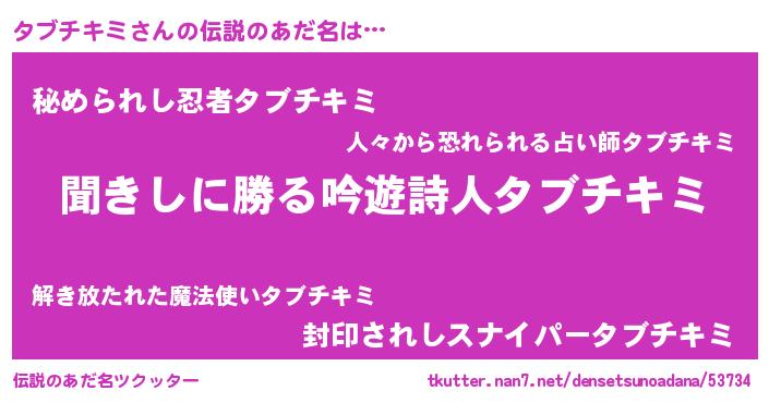 | 男性向けラノベタイトル風あだ名 | 『緋弾のタブチキミ』 |