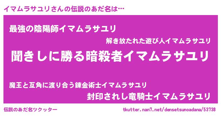 | ヒーロー風カッコイイあだ名 | 『ネオイマムラサユリ』『仮面イマダー』 |