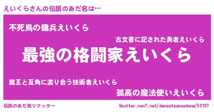 | 意味不明あだ名 | 『ヨモギ科えいくら属』『自称えいくら』 |