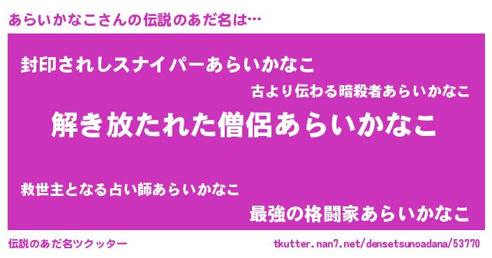 | 意味不明あだ名 | 『とにかく怪しいあらいかなこ』 |