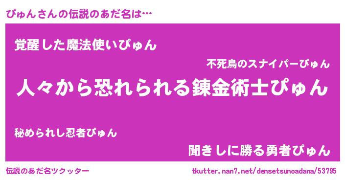 | 意味不明あだ名 | 『住所不定無職ぴゅん(89歳)』『自称ぴゅん』 |