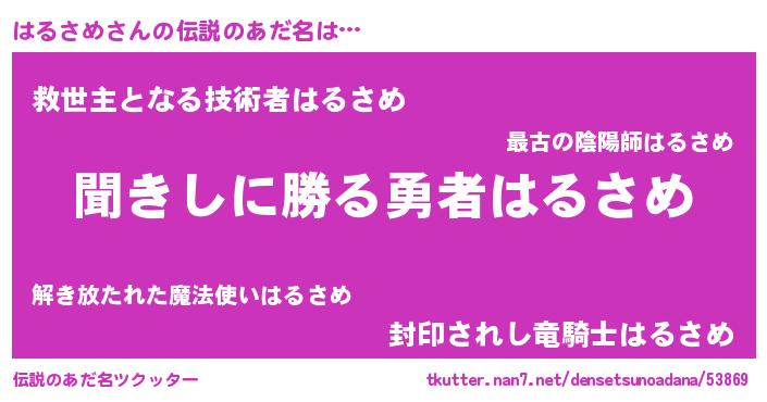 | ヒーロー風カッコイイあだ名 | 『ネオハルサメ』『正義の使者はるさめ』 |