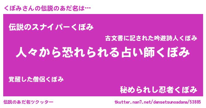 | 男性向けラノベタイトル風あだ名 | 『おまえをオタクにしてやるから、俺をくぼみにしてくれ! 』 |