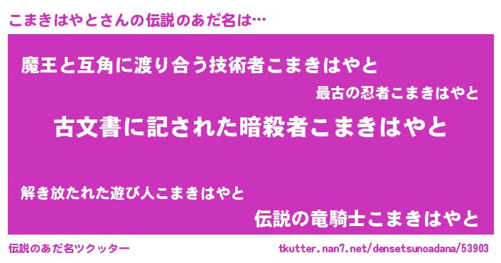 | 意味不明あだ名 | 『永久保存こまきはやと』 |