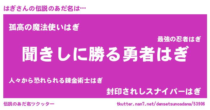 | 意味不明あだ名 | 『自称はぎ』『住所不定無職はぎ(7歳)』 |