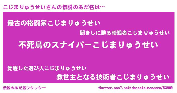 | 女子向けラノベタイトル風あだ名 | 『乙女ゲームの破滅フラグしかない悪役こじまりゅうせいに転生してしまった…』 |
