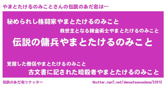 | 男性向けラノベタイトル風あだ名 | 『やまとたけるのみことの憂鬱』 |