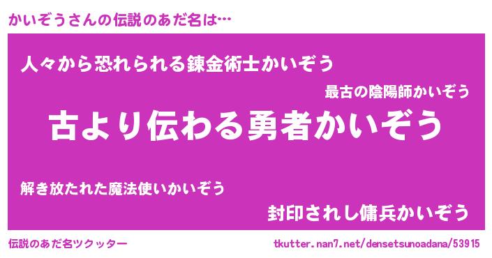 | ヒーロー風カッコイイあだ名 | 『仮面カイダー』『ウルトラ戦士カイゾウ』 |