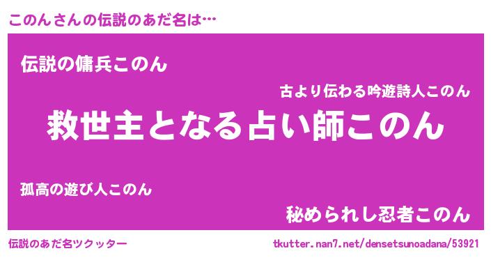 | 男性向けラノベタイトル風あだ名 | 『ノーゲーム・ノーコノン』 |
