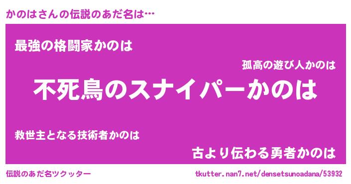 | 胡散臭い通販商品みたいなあだ名 | 『モテモテ間違いなし霊験あらたかなお札…その名も「かのは」』 |