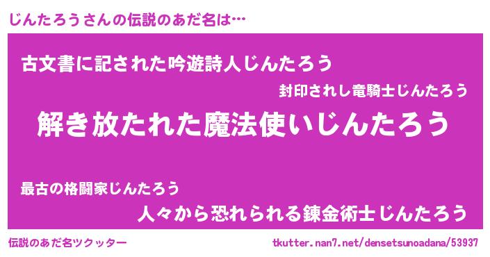 | 男性向けラノベタイトル風あだ名 | 『ダンジョンにじんたろうを求めるのは間違っているだろうか』 |