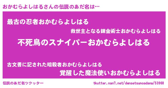 | 肩書あだ名 | 『おかむらよしはる御曹司』 |