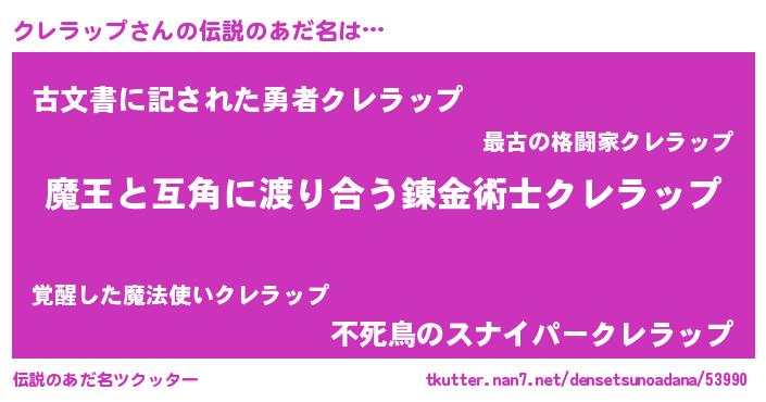 | ヒーロー風カッコイイあだ名 | 『愛の使者クレラップ』『ネオクレラップ』 |