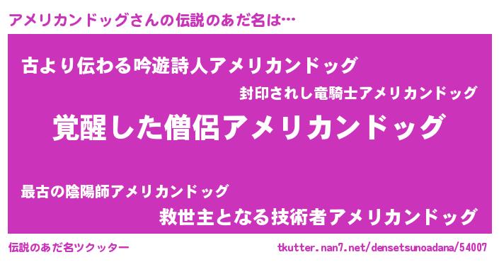 | 意味不明あだ名 | 『自称アメリカンドッグ』 |