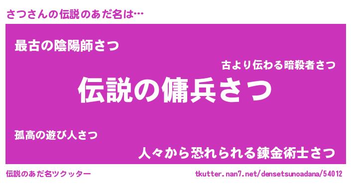 | ファンタジー風あだ名 | 『サツフェル』『エターナルサツー』 |
