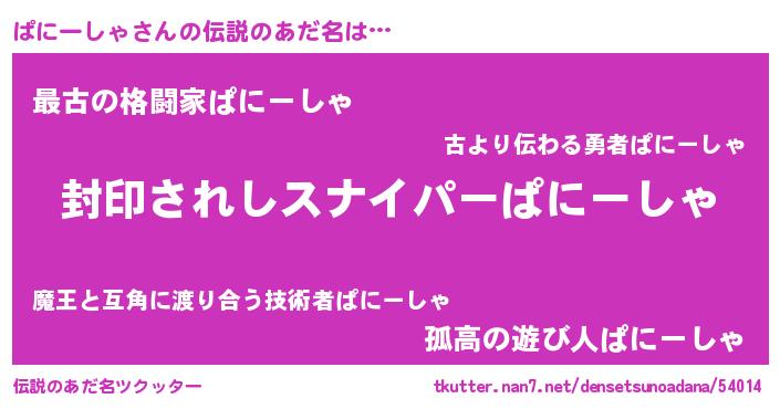| 男性向けラノベタイトル風あだ名 | 『この素晴らしい世界にぱにーしゃを!』 |