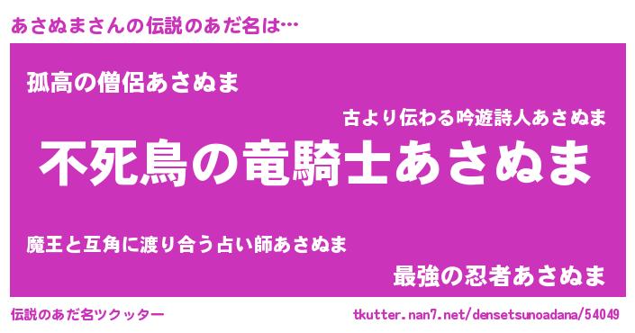 | 意味不明あだ名 | 『住所不定無職あさぬま(12歳)』 |