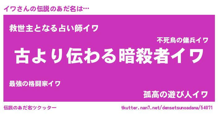 | 意味不明あだ名 | 『住所不定無職イワ(40歳)』『永久保存イワ』 |