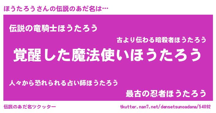 | 男性向けラノベタイトル風あだ名 | 『ほうたろうの嫁は女の子じゃないと思った?』 |