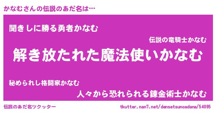 | 男性向けラノベタイトル風あだ名 | 『かなむの嫁は女の子じゃないと思った?』 |