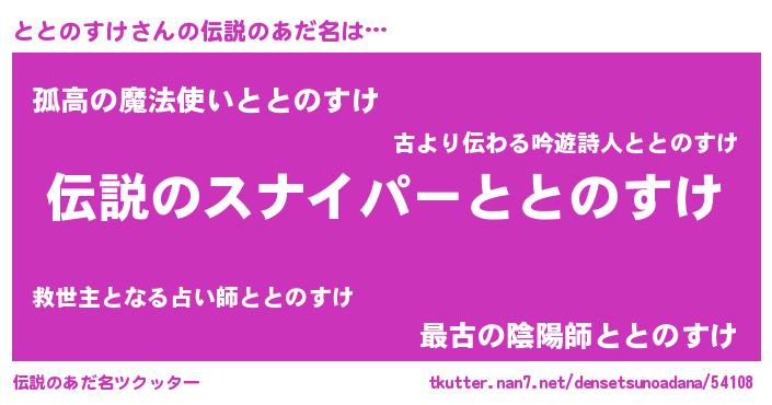 | 男性向けラノベタイトル風あだ名 | 『ととのすけの憂鬱』 |