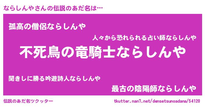 | 女子向けラノベタイトル風あだ名 | 『ならしんや姫と円卓の騎士』 |